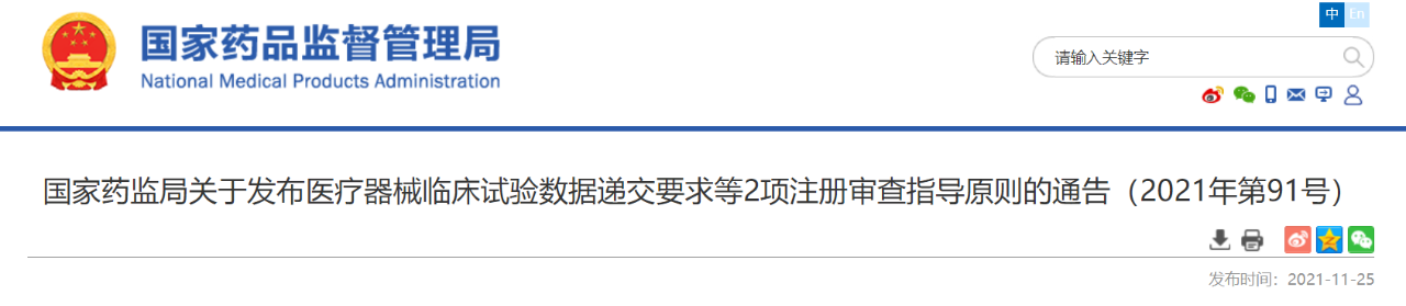 医疗器械临床试验数据递交要求等2项注册审查指导原则发布