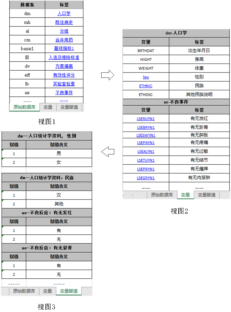 数据说明文件用于描述原始数据库和分析数据库的内容和结构,是助于审阅者快速了解数据库中各数据集、变量及其相互间的结构关系,准确理解递交的数据内容。建议采用Excel文件,以表格的形式列明原始数据库和分析数据库中所含的数据集、变量、变量类型(如字符型、数值型)、标签、赋值及其对应关系。为了便于审阅,数据集和变量应具有相应的中文标签,标签长度不宜过长。若使用了外部词典(如MedDRA),应明确使用的外部词典名称和版本号。